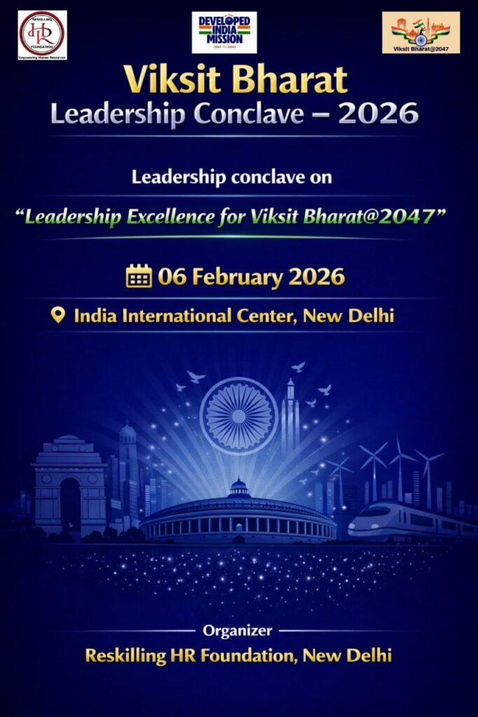 The Reskilling HR Foundation is organizing the Viksit Bharat Leadership Conclave 2026 at the India International Centre (IIC), Delhi. The theme of the conclave is “ Leadership Excellence for Viksit Bharat@2047”.